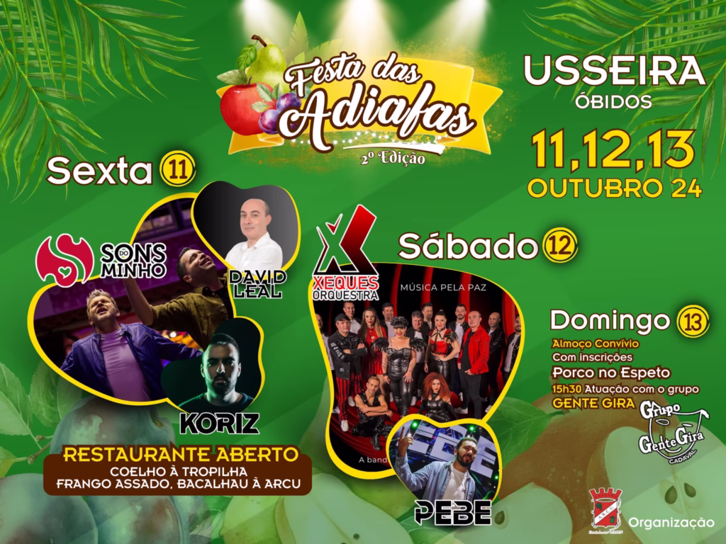 A Usseira, no concelho de Óbidos vai receber a segunda edição da festa das Adiafas de 11 a 13 de outubro. Os Sons do Minho e a Xeques Orquestra são os destaques das festividades.