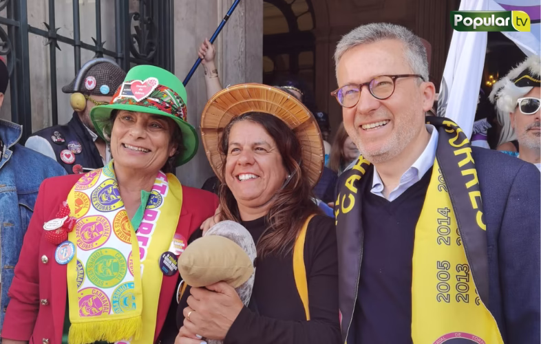 Da varanda, Carlos Moedas, foi o primeiro a abordar os foliões com uma saudação de boas-vindas e evidenciou que “o Carnaval de Torres Vedras é um momento em que estamos todos juntos pela liberdade, onde cada um mostra aquilo que quer mostrar e tem orgulho naquilo que representa”. Logo a seguir, Laura Rodrigues, presidente da Câmara Municipal de Torres Vedras interviu em tom de agradecimento e demonstrou que vale a pena vir a Lisboa para mostrar o nosso Carnaval, salientado a candidatura a Património Cultural Imaterial da Humanidade da Unesco.