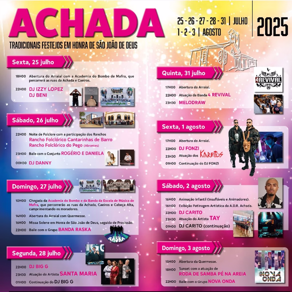 As Festas de São João de Deus marcam uma semana de festa em Achada, no concelho de Mafra de 25 a 3 agosto.